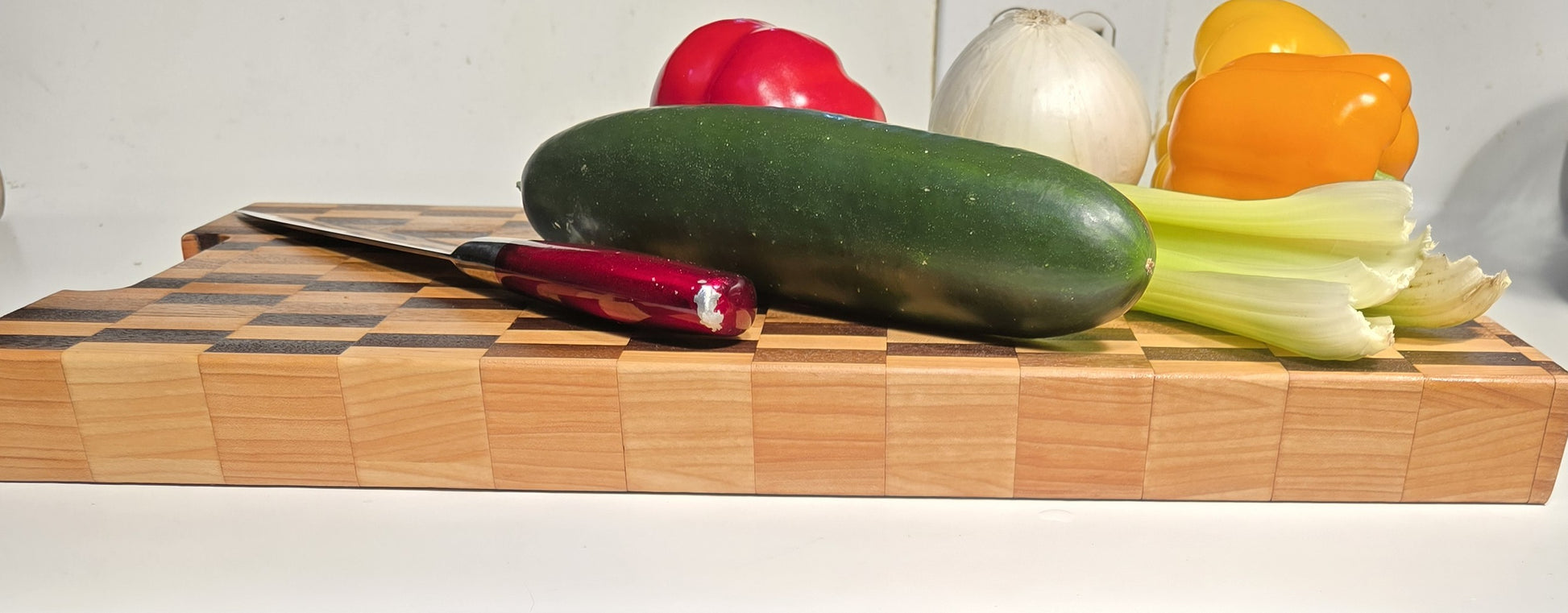 Our Extra-Large Cutting Boards are L23” X W12.5” X H1.754” and weigh 12.8 lbs. The Cutting Boards are very beautiful and are made of White Oak, Hard Maple and Walnut wood. They are durable and flat surfaced used for chopping, slicing, dicing, and preparing various ingredients in the kitchen. These boards come in different sizes. Cutting boards are essential tools in both home and professional kitchens and offers a variety of uses such as: